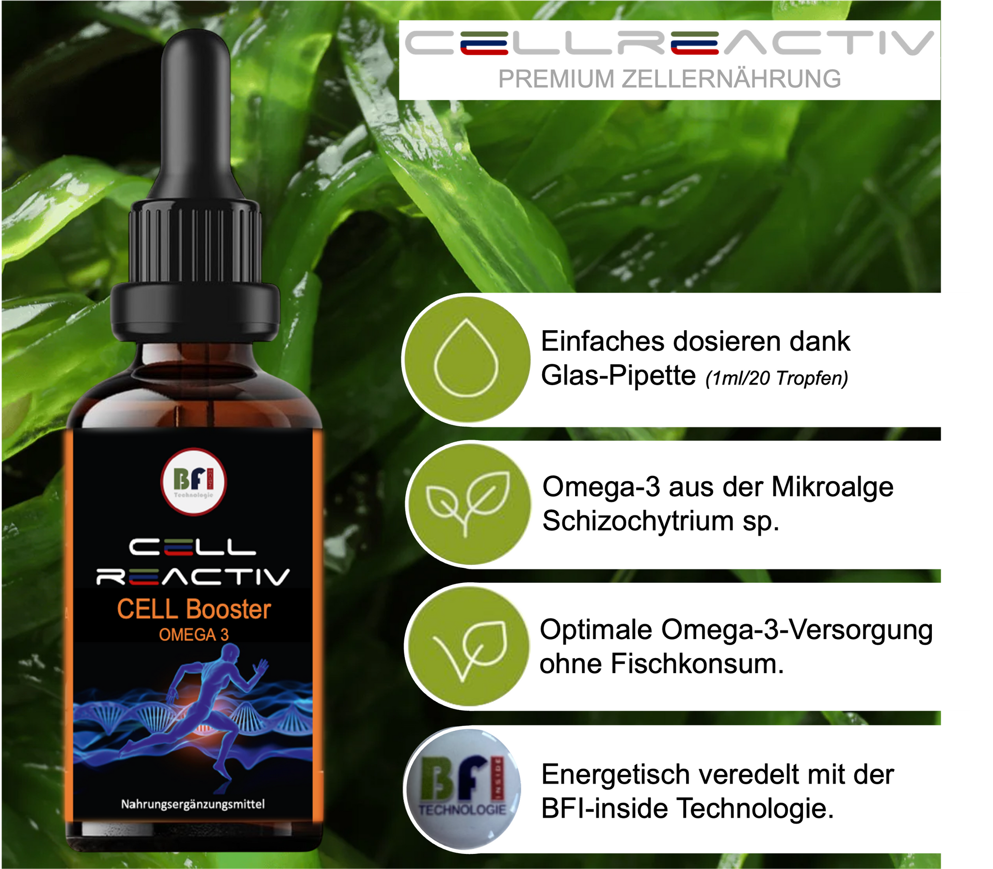 Der CELL Booster ist ein neuartiges Omega 3 Öl das aus Algen gewonnen wird, was es zu einer idealen Omega-3-Quelle für Veganer, Vegetarier und sowieso für JEDEN macht!